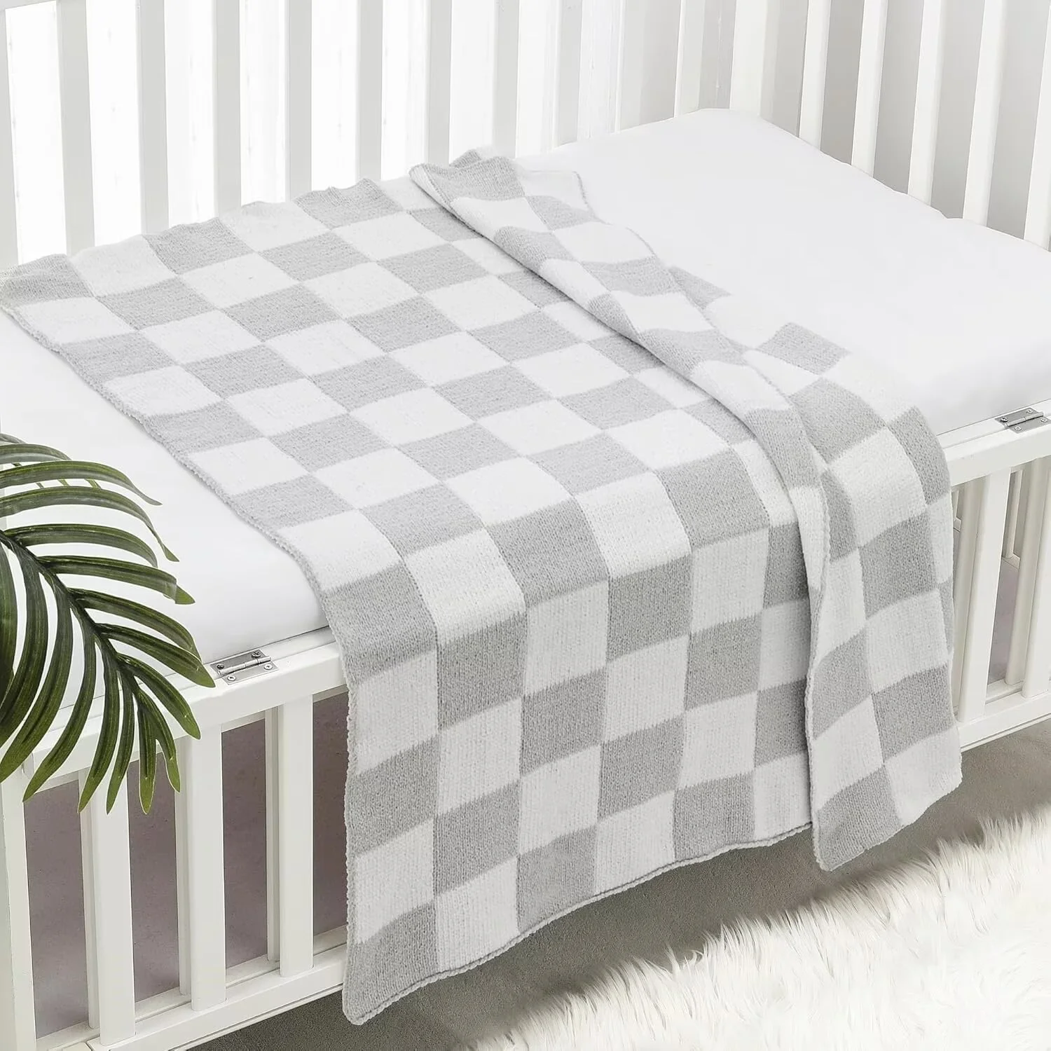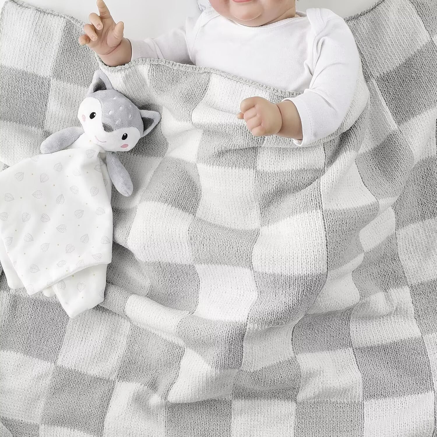Perfect as a baby shower gift or newborn essential, the grey checked design adds a stylish touch to any nursery or stroller. Whether you’re gifting it to new parents or purchasing it for your own little one, this chenille baby blanket is a thoughtful and practical choice.